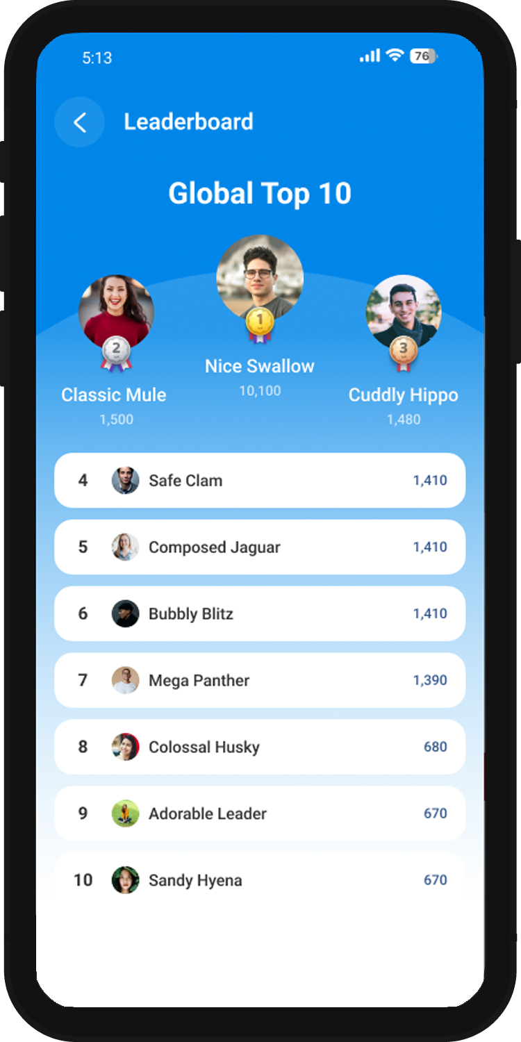 By allowing your users to see their progress and that of the competition on a Leaderboard, you will keep them engaged, excited to use your platform, and eager to share their results with friends and family.